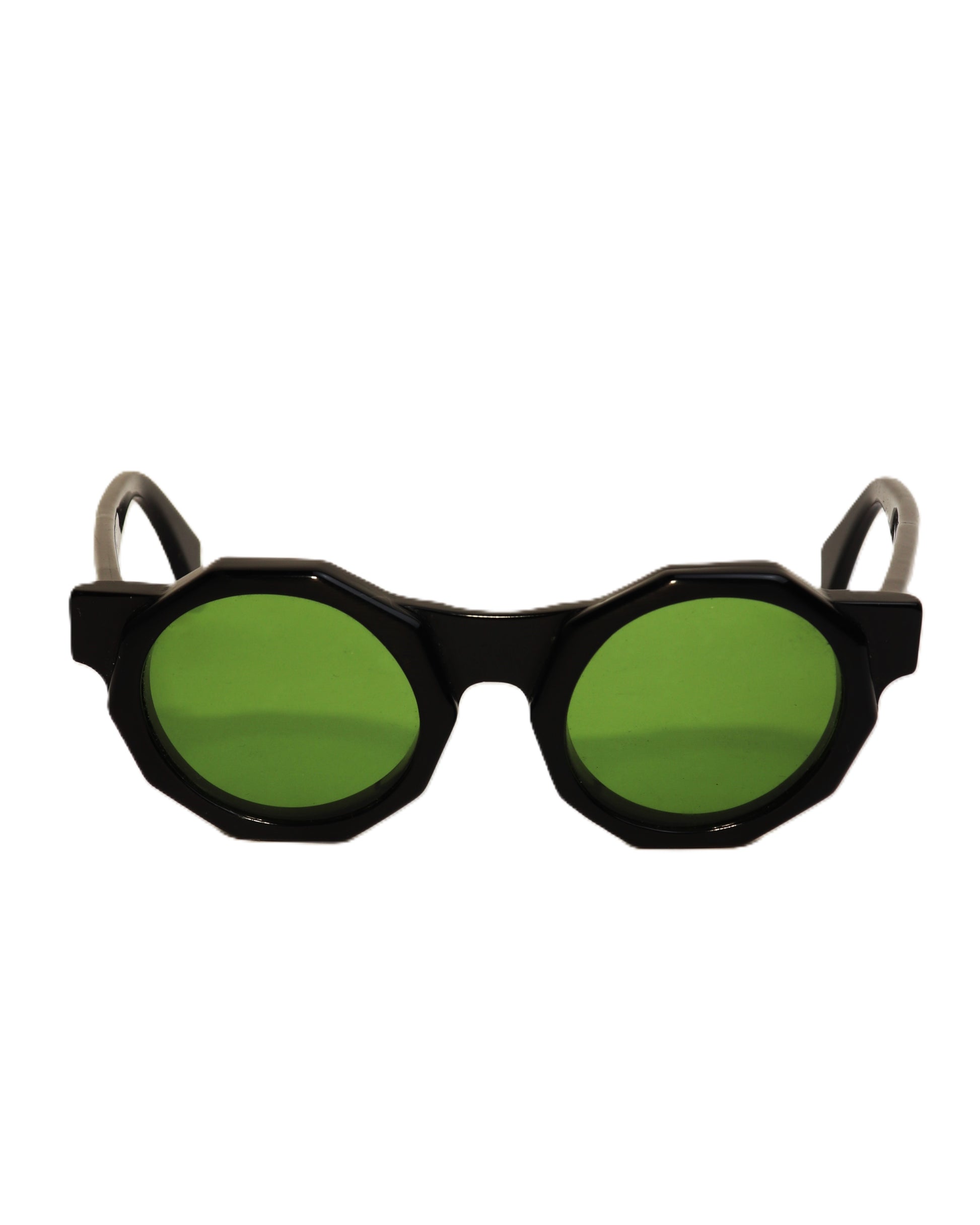 Il frontale si ispira alla membrana cellulare, con una geometria poligonale che racchiude la lente tonda verde, simbolo del cloroplasto, il cuore della fotosintesi. Un richiamo alla vita e all’energia della natura, rielaborato in chiave di design.